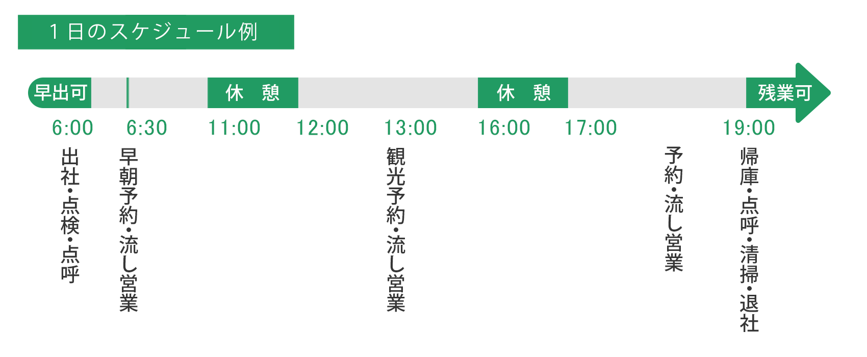 1回の乗務は朝から夜に及ぶため、勤務翌日の非番は丸1日休息時間となります。