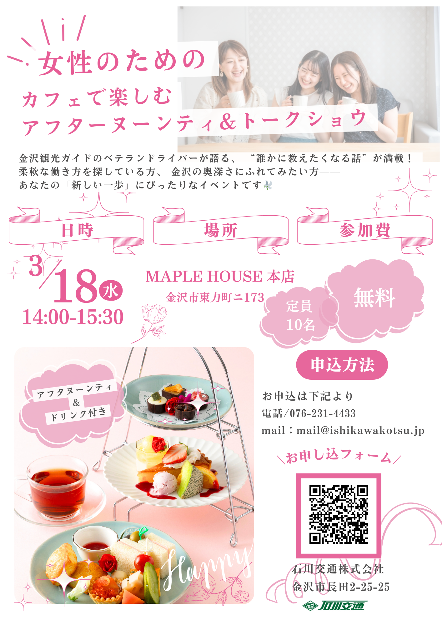 💰参加費:無料!(アフタヌーンティー&ドリンク付き)